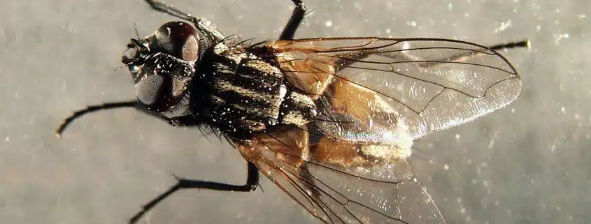 Die Stubenfliege ist schwarz, 7–8 mm lang, ihr Leckrüssel nach unten gerichtet und endet in dem gut erkennbaren Saugkissen. Die Innenränder der Flügel überschneiden sich in Ruhestellung. Das Weibchen legt etwa 600 Eier vorwiegend in Mist, Fäkalien, Komposthaufen und Müllplätzen ab, dass heißt, überall dort, wo sich organische Substanz zersetzt. Diese Fliege hat eine Vorliebe für menschliche und tierische Körperausscheidungen (Schweiß, Kot, eiternde Wunden)und überträgt so Infektionskrankheiten, wie z.B. Typhus, Cholera, Salmonellosen, Kinderlähmung, Maul- und Klauenseuche u.a.). Wohnungseinrichtungen und Lebensmittel werden verschmutzt und unter Umständen mit Krankheitserregern verseucht.